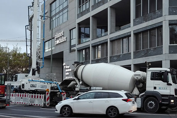 Beschreibung: Flüssiboden ermöglichte die und schnelle und zugleich schonende Verfüllung einer Baugrube. Dies reduzierte das Risiko für die Beschädigung eines denkmalgeschützten Gebäudes und trug zudem wesentlich zur Verkürzung der Bauzeit bei.