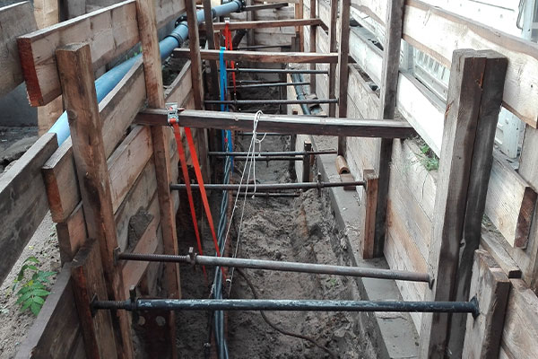 Beschreibung: Im Rahmen dieses Bauvorhabens wurde Flüssigboden als Fußeinspannung für Verbauträger eingesetzt. Die Träger waren in t in verrohrt hergestellten Bohrungen eingestellt worden